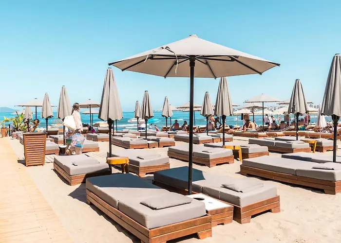 De strandfaciliteiten van Marina Premium Hotel & Apartments Vlorë bevatten parasols.